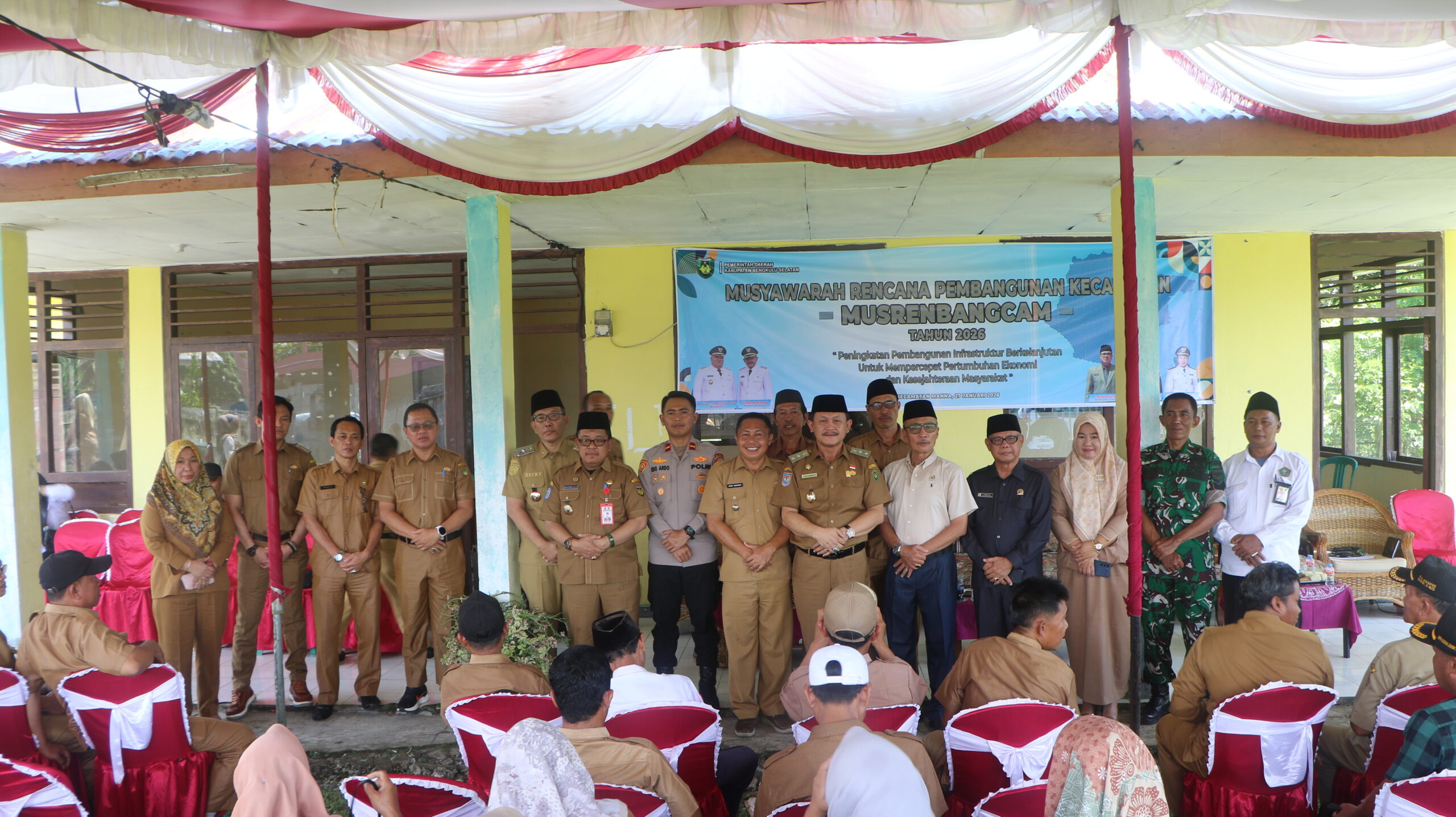 Manna – Musyawarah Perencanaan Pembangunan (Musrenbang) tingkat Kecamatan Manna resmi dibuka oleh Wakil Bupati Bengkulu Selatan, Yevri Sudianto. Kegiatan tersebut digelar di halaman Aula Kantor Camat Manna dan dihadiri oleh unsur DPRD Kabupaten Bengkulu Selatan, para kepala Organisasi Perangkat Daerah (OPD) terkait, Camat Air Nipis beserta Forum Koordinasi Pimpinan Kecamatan, serta seluruh kepala desa di wilayah Kecamatan Air Nipis. Turut hadir tokoh masyarakat, tokoh agama, unsur PKK, pemuda, dan perwakilan masyarakat.